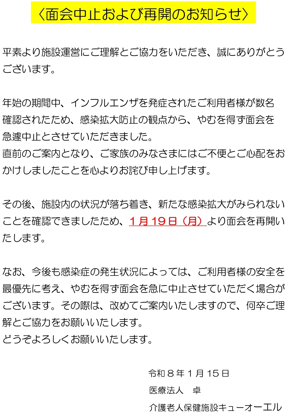 当施設における新型コロナウイルス感染者発生のお知らせ【第一報】